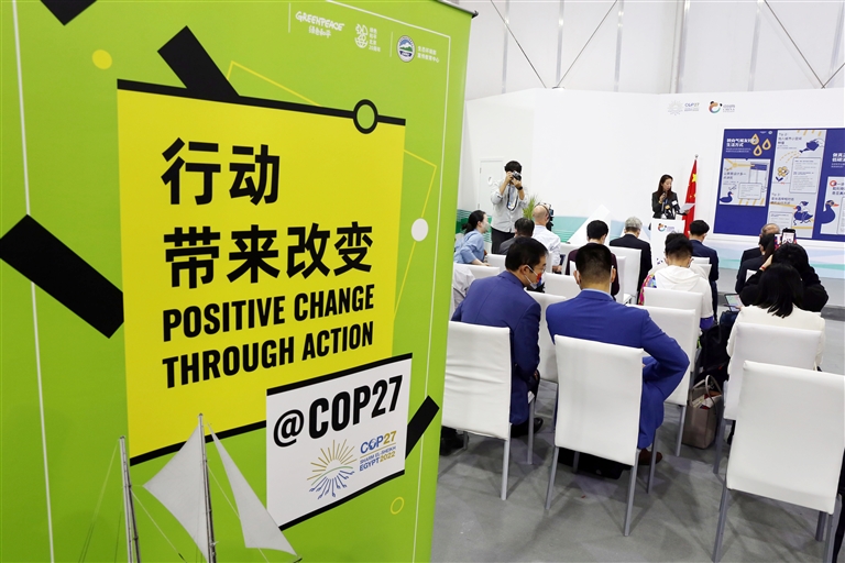 一场题为“绿色生活,共建共享——倡导公众参与绿色行动”的主题边会6日在《联合国气候变化框架公约》第二十七次缔约方大会(COP27)的中国角举行。 新华社 发(艾哈迈德·戈马 摄)