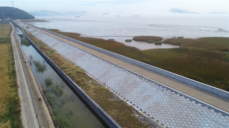连日来,普陀区虾峙镇湖泥保护区海塘(老厂跟海塘)除险加固工程的施工人员抓紧浇筑塘面。据了解,该海塘全长780米,按50年一遇标准设计建设。摄影 通讯员 刘生国 丁益斌
