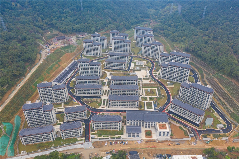 11月15日上午,记者来到东塘线原陈家后村地块,只见崭新的居民小区山悦雅庭,在翠绿山色的映衬下,显得幽静雅致。小区依山而建,25幢中式风格的居民楼错落有致,公共活动区域与儿童游乐场地已建设完毕,等待设施设备安装。