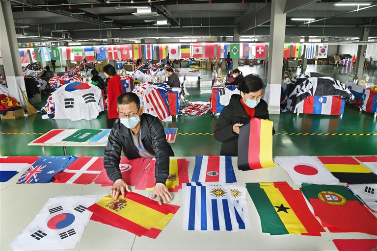山东青岛:世界杯用旗从这里出发