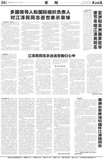 港澳台各界深切缅怀江泽民同志