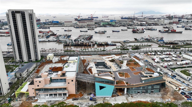 近日,在沈家门东海西路南侧,普陀区江湾滨海公园工程正在稳步推进中。据悉,该项目地为船厂旧址,占地面积2万多平方米, 将打造成集医疗、教育、购物、休憩、娱乐于一体的普陀城西社区生活综合体,预计本月底可完工。摄影 记者 陈永建