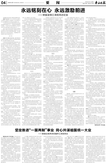 坚定推进“一国两制”事业 同心共谋祖国统一大业