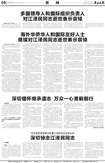 海外华侨华人和国际友好人士继续对江泽民同志逝世表示哀悼