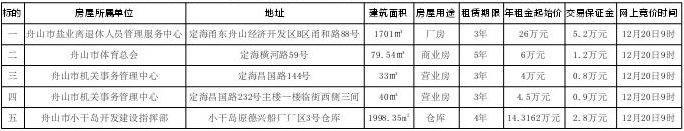 定于2022年12月20日起在舟山市公共资源交易网上对下列标的租赁权进行网上竞价,现公告如下: