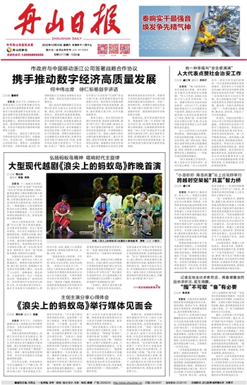 大型现代越剧《浪尖上的蚂蚁岛》昨晚首演
