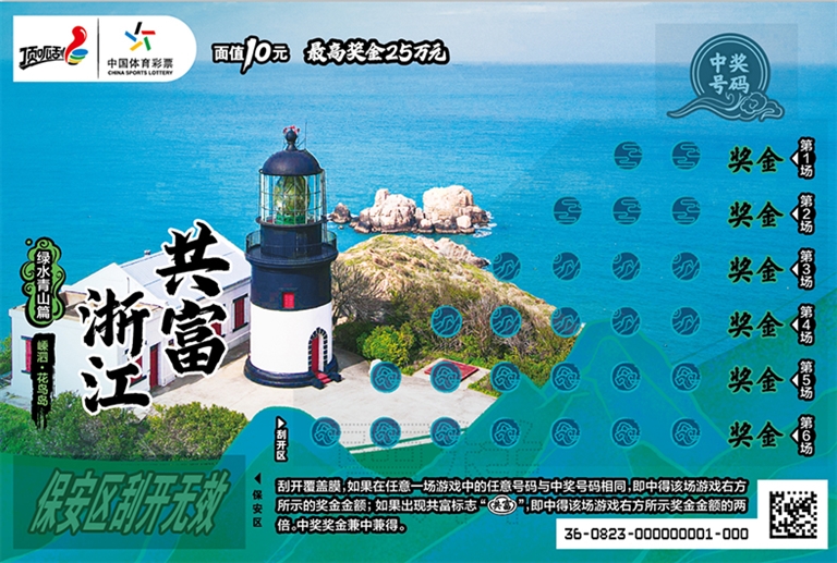 据了解,“共富浙江”主题即开型体育彩票共设6个系列,首款系列是“绿水青山篇”,以我省山区26县中10处山水风景为背景,包括杭州淳安千岛湖、温州平阳南麂岛、温州永嘉楠溪江、湖州德清莫干山、金华兰溪诸葛八卦村、衢州江山江郎山、台州仙居神仙居、丽水庆元百山祖、丽水云和梯田、舟山嵊泗花鸟岛等,每张面值10元,充分诠释了“绿水青山就是金山银山”的绿色发展理念,是中国体育彩票用实际行动支持浙江共同富裕示范区建设,助力山区26县高质量发展的一项重要举措。后续,“共富浙江”主题即开型体育彩票还将推出“非遗传承篇”“赛事助力篇”“韵味古镇篇”“场馆蝶变篇”“奥运冠军篇”,以体育彩票为载体,弘扬我省优秀传统文化,激发非遗经济活力,展现体育建设成果,促进体旅融合发展。