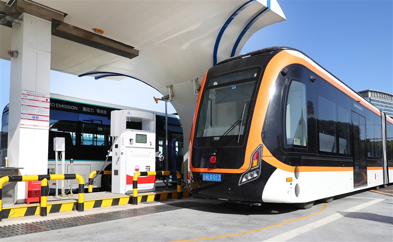 12月15日,一辆氢能中运量公交车驶入氢能公交车加气站加气。上海市浦东新区临港新城作为上海市氢燃料电池汽车商业运营示范区,从今年初开始,整合已有资源,加速氢能公交车布局和投入。目前,已有66辆氢能公交车在临港公交公司辖区线路上运营。除此之外,正在进行空载试运行测试的52辆氢能公交车,有望在年内正式上线运营,逐步替换既有线路上的燃油公交车,使临港新城氢能公交车总数达到118辆。 新华社记者 方喆 摄