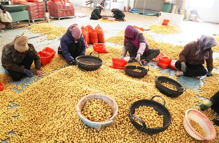 12月20日,在定西市安定区香泉镇马铃薯产业园内,工人在筛选马铃薯原原种。