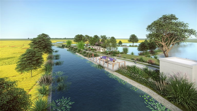 贺新亮说这项改造完成后,游客可以从东沙桥头区域直接沿着机耕路改造的游步道,抵达司基村建设的田园景观区域。抛荒地整治后,司基村内谋划“一条龙”产业,不仅解决了土地抛荒问题,让村民实现增收,村集体经济增加能和村基础建设形成良性循环,未来,完全有可能延伸发展乡村旅游产业,让共同富裕之路愈加行稳致远。