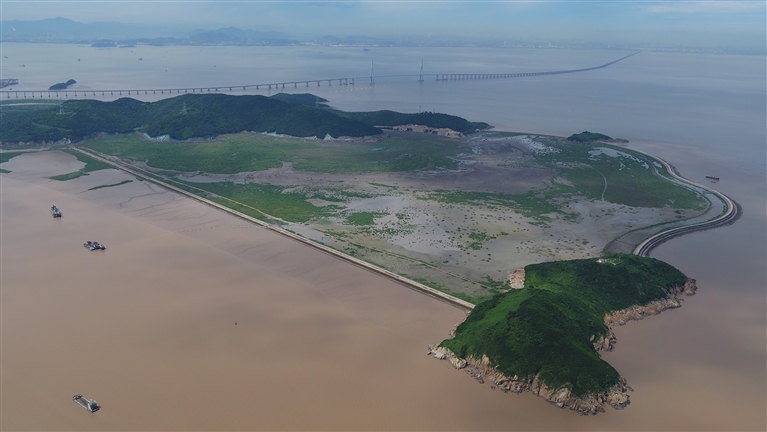 建设“海上长城”,打造生态廊道,为周边群众和园区提供美观安全的海上屏障。定海区水利局融合“水利+”理念,在解决该区域原有海塘设防标准偏低、防洪排涝体系不完善等问题的基础上,改变传统海堤防浪墙对海浪以“挡”和“抗”的硬对硬模式,采用“通”和“排”的以柔克刚的衔接包容模式。未来,结合防汛巡查需要,这里还要建设园区道路7.32公里,桥梁5座。