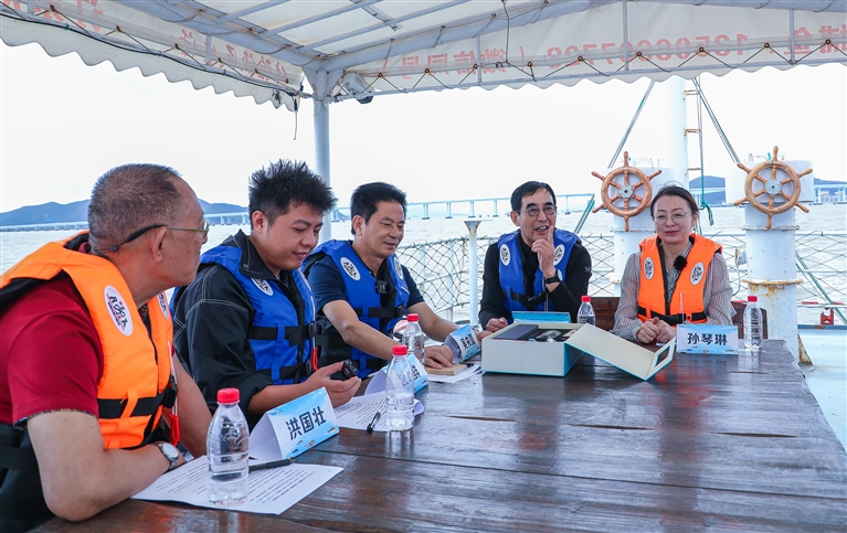 9月22日,“漫游沈家门渔港”直播活动如约而至。嘉宾们坐着游船,迎着海风,从沈家门港航码头向东进发,一路畅谈舟山渔业产业与海鲜电商的发展变迁。