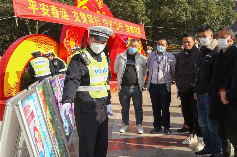 自1月7日春运工作启动以来,全市公安交警在广泛开展“平安春运交警同行”主题宣教活动的同时,集中优势警力,加强路面“两客一危一货一面”重点车辆安全检查,强化“三超一疲劳”、酒驾醉驾等违法行为查处,确保春运道路交通安全。(王凯/文 张志龙 任旭品/摄)
