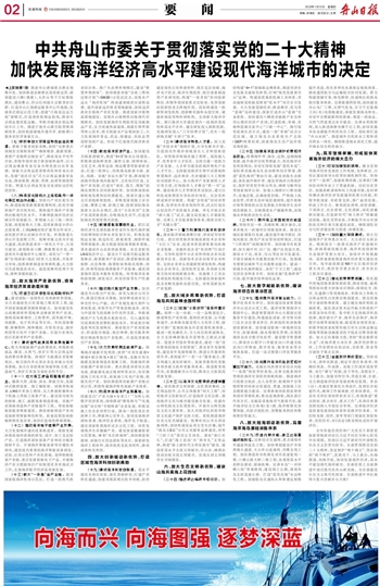 中共舟山市委关于贯彻落实党的二十大精神 加快发展海洋经济高水平建设现代海洋城市的决定