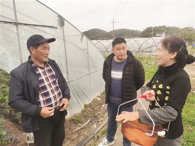 杨飞如今在朱家尖驻点,经常到周边农户的种植园巡视,现场指导种植技术。采访当天,他与市农业技术推广中心推广研究员鲍维巨一行人在林建强的家庭农场进行草莓种植技术推广项目评审。