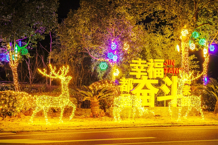 昨晚,金塘岛各主要街道亮起彩灯,为海岛增添了一份浓浓的年味。