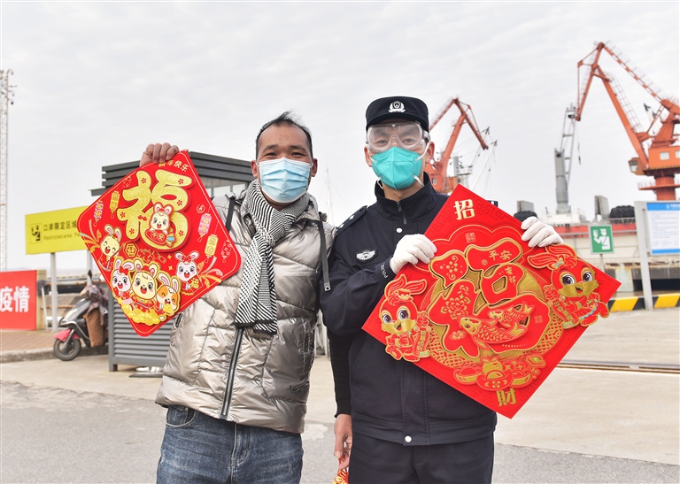昨天下午,舟山远洋渔业基地一码头,边检民警快速办理巴拿马籍“顺泽冷7”轮18名中国籍船员换班手续。为确保节日期间口岸安全顺畅,舟山边检开通了中国籍换班船员“绿色团圆通道”,并提供24小时全天候通关服务保障,确保船员换班随到随办、即办即走。