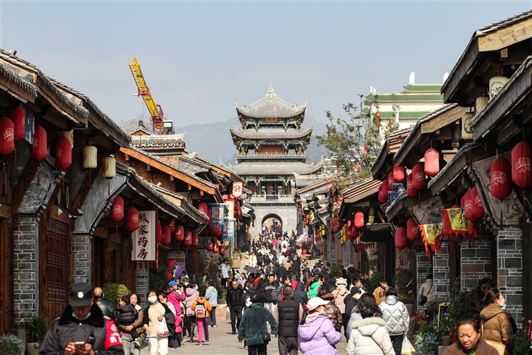 四川省凉山州西昌市建昌古城人流如织(1月17日摄)。