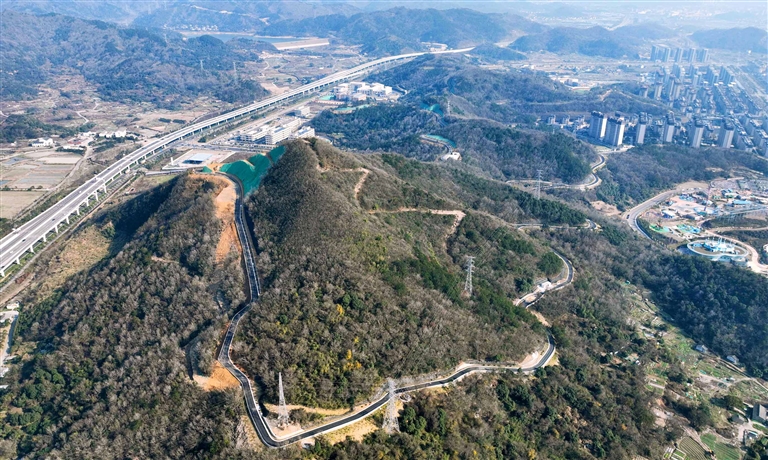1月18日,建设中的新城鼓吹山游步道已见“长龙”雏形。该游步道项目总长约6公里,净宽4米,面层铺设彩色沥青,预计今年5月份完工。 摄影 记者 陈永建 通讯员 何坚