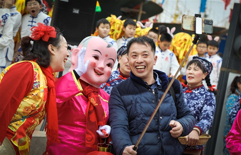“太热闹了,老老小小都在一起,舞台、设备都弄得蛮好!”今年70岁的丁水娟高兴地说,“看,那是老行当和老手艺组成的百工队。货郎担那些老古董,很多年没看到了。”