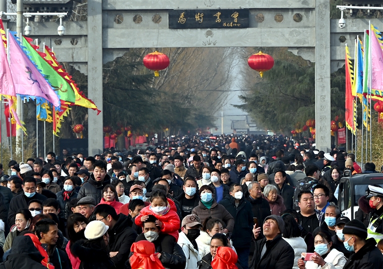 当日是正月十三,时隔三年,河南省宝丰县马街书会线下“重启”。来自全国各地的说书艺人负鼓携琴,聚集于此。在麦田中,他们以天作幕,以地为台,说书会友,弹唱献艺。