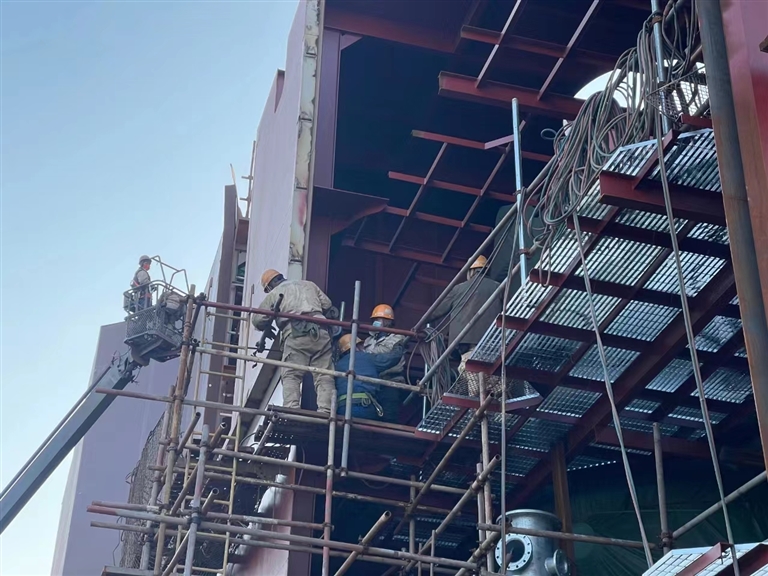 “为加快这艘集装箱船的脱硫塔系统改装进度,我们从船到厂的前45天便开始预制设计,并采用脱硫分段安装的施工方式作业。”舟山中远海运重工有限公司修船管理部总管崔江陵边走边介绍说,等船到厂后,就将提前预制的新的脱硫塔装置整体吊装上船。比起以往散装、边割边装的方式,这种操作可以压缩一半工期。