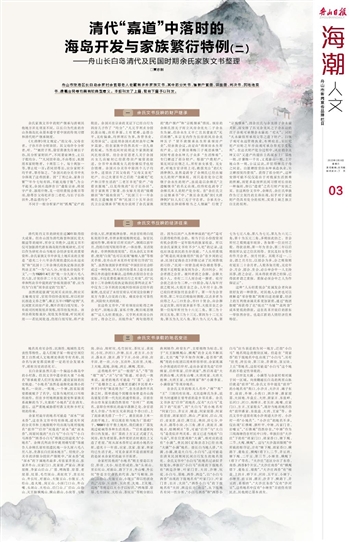 清代“嘉道”中落时的海岛开发与家族繁衍特例(二)