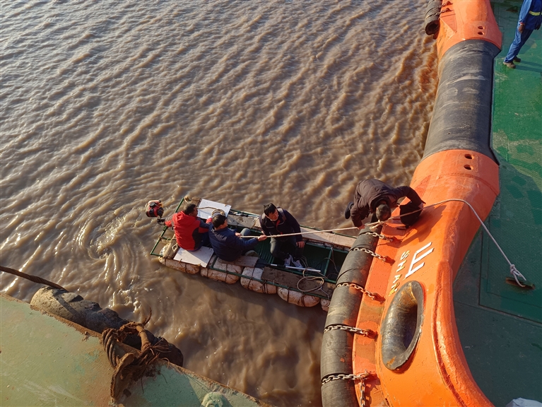 当日,码头附近无交通艇可雇用,为尽快完成查勘工作,人保财险舟山市分公司的理赔人员坐上船员自制小筏,到事故船舶处完成现场查勘,为后续理赔工作顺利开展打下了坚实基础。