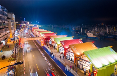 璀璨的灯火,与海边的渔火交相辉映;此起彼伏的欢笑声,伴随着四溢的扑鼻香气,这里,已然成为沈家门十里渔港上一道亮丽的风景线。