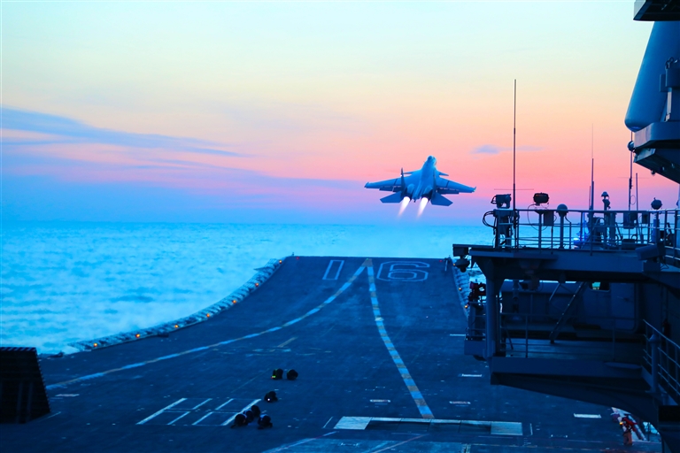 海军航空大学某基地飞行员驾驶歼-15战机滑跃起飞(2022年3月19日摄)。 新华社 发(姜涛 摄)