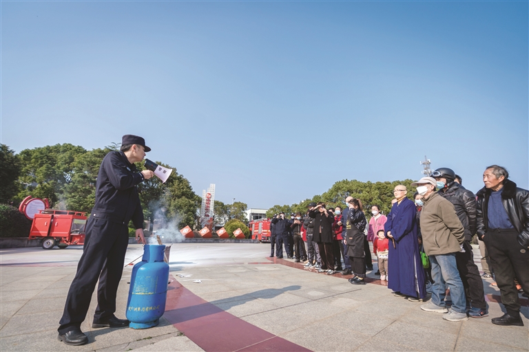 为普及消防安全知识,切实提高辖区群众消防安全意识和应急逃生能力。近日,定海马岙派出所联合定海消防大队、街道应急管理部门在马岙街道法治广场开展了消防安全培训暨灭火演练。