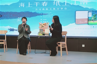 虽然多次来舟山旅游、采风,但是新书分享却是第一次。她曾在《人民日报》撰文说,自己是“看着乡戏、听着越剧长大,‘跟着戏班去流浪’是儿时的梦想”,这流浪之梦与三毛有缘;曾两届担任三毛散文奖审读委委员、副主任,与定海、与舟山有缘。种种因缘,促成了这次“海上千春 纸上江南”新书分享会。