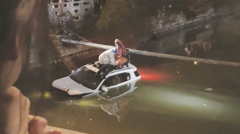 路遇汽车坠河 热心市民挺身而出