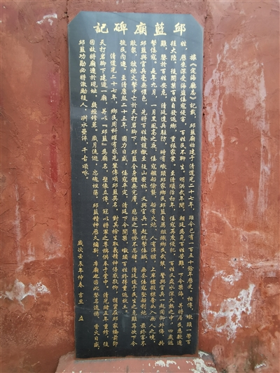 老周看出笔者疑问,就把我们带到《邱蓝庙碑记》面前,绘声绘色给我们介绍邱蓝两位长工保境安民的故事。