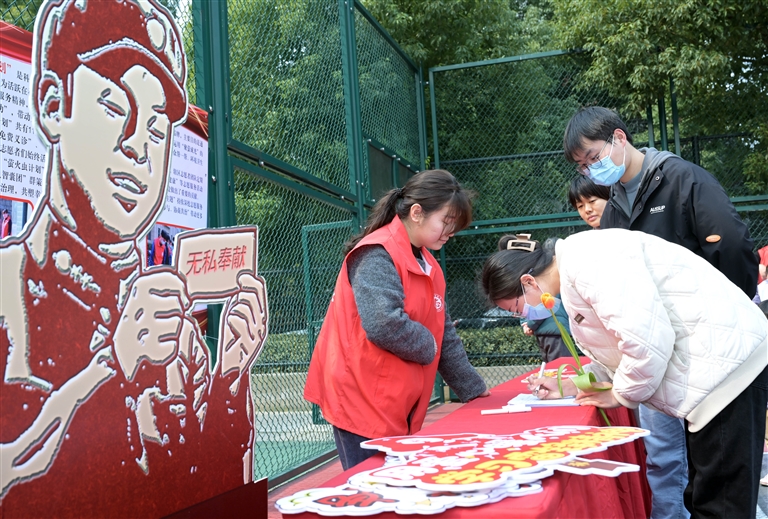 3月1日,在合肥市南七街道科企社区,工作人员(左)现场招募社区志愿者。在学雷锋纪念日来临之际,全国各地开展种类多样的志愿服务活动,以实际行动传承雷锋精神。 新华社记者 周牧 摄