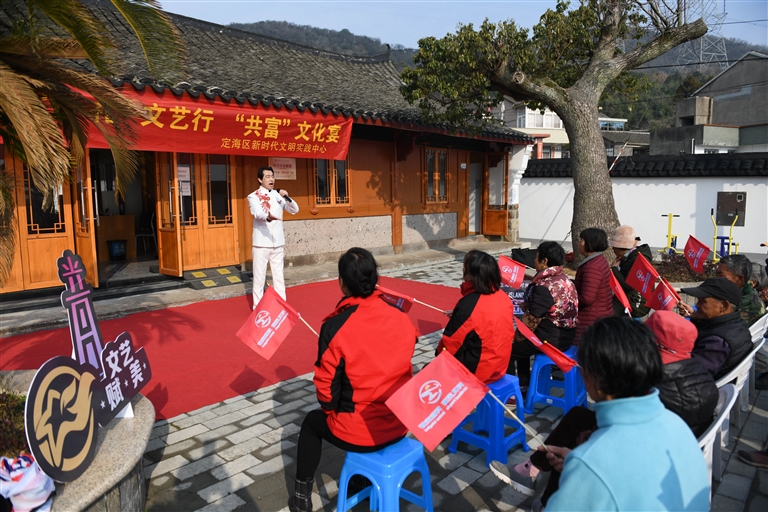 昨天上午,定海美之声演唱团志愿者来到盘峙岛“幸福驿家”,为老人送上越剧、舞蹈等文艺演出,并为老人提供生活服务。
