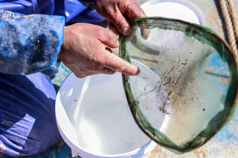 据船老大介绍,今年鳗苗收购价格蛮高的,一尾鳗苗能卖17元,一季干下来估计收入还不错。