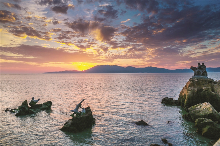 徜徉在东港的街市,发现这里的不少地名很有意思,莲洋街、海莲路、海华路等街道地名,充满了浓浓的莲香味。在莲花洋畔,还有一座莲花岛,五百罗汉驻守岛礁,岛上还有一尊日本和尚慧锷的雕像,这都是著名艺术大师朱仁民的杰作。无论莲花石,还是莲花岛,莲洋街,都创意于莲花洋浓郁的海洋文化。