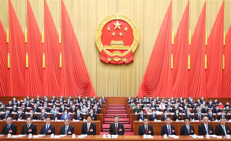 习近平、李克强、栗战书、汪洋、李强、王沪宁、韩正、蔡奇、丁薛祥、李希、王岐山等在主席台就座。