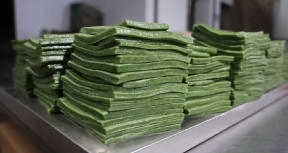 每年三四月是金塘岛内传统食品麻糍的上市热销期。近日,河平村一家麻糍加工作坊已提早开工。“我家的艾草以大棚种植为主,每天可做麻糍100斤左右。”该作坊业主瞿治芳介绍说,自立春开始,艾草可以批量采摘,他们就开始了加工销售麻糍。 摄影 通讯员 张玮