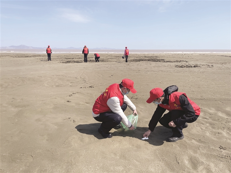 岱山县公安局志愿者服务队到鹿栏晴沙开展“青春有你 志愿同行”学雷锋志愿服务活动。