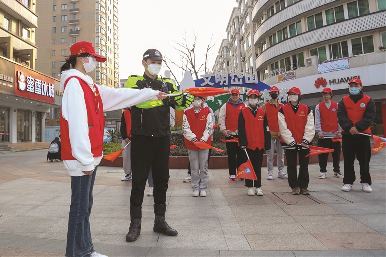 岱山公安交警大队组织浙海职院石化学院学生志愿者开展文明交通志愿服务活动。