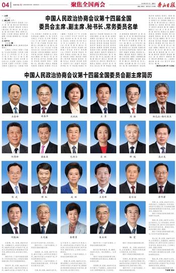 中国人民政治协商会议第十四届全国委员会主席、副主席、秘书长、常务委员名单