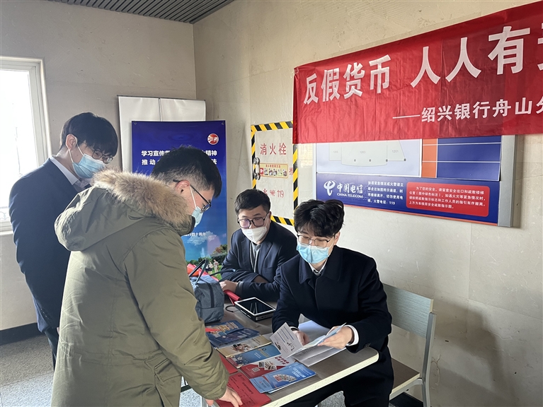 近日,绍兴银行舟山分行组织宣传小分队走进中国电信舟山分公司开展人民币知识宣传活动。活动现场,该行通过解答疑问,宣传反假货币基本常识的方式,帮助大家提高对人民币的识别能力,加深对不宜流通人民币新标准的了解,努力营造人人爱护人民币的良好氛围。