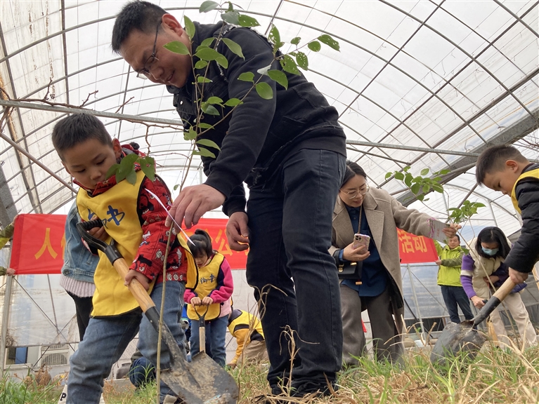 一株新苗、一锹厚土、一瓢清水,家长与孩子一起在春天种下一棵树,也将生态环保理念的种子埋进了孩子心里。