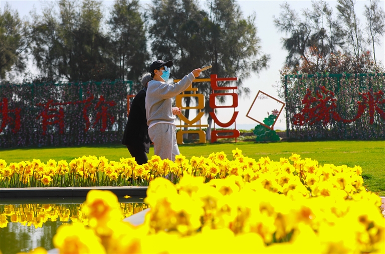 2023南洞油菜花节近日开幕。游客悠然漫步花海,感受春天的气息。摄影 记者 姚凯乐