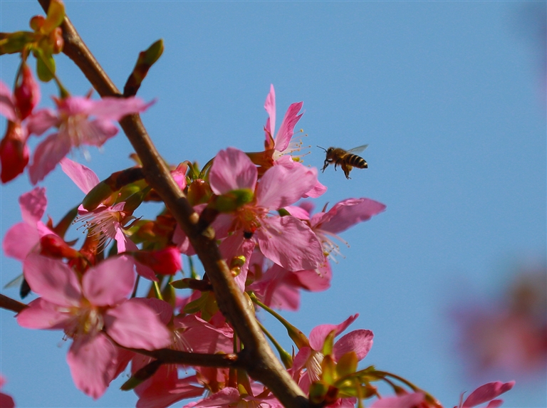 普陀螺塘线沿线,山花烂漫,蜜蜂忙碌 摄影 记者 张磊