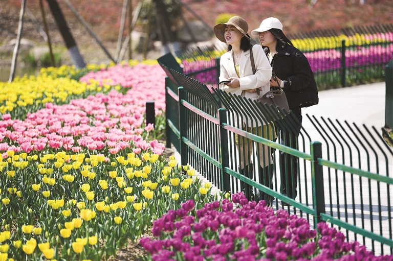 大青山四季花海,近10万株郁金香开满大地,焕发勃勃生机,游人络绎不绝摄影 记者 陈永建