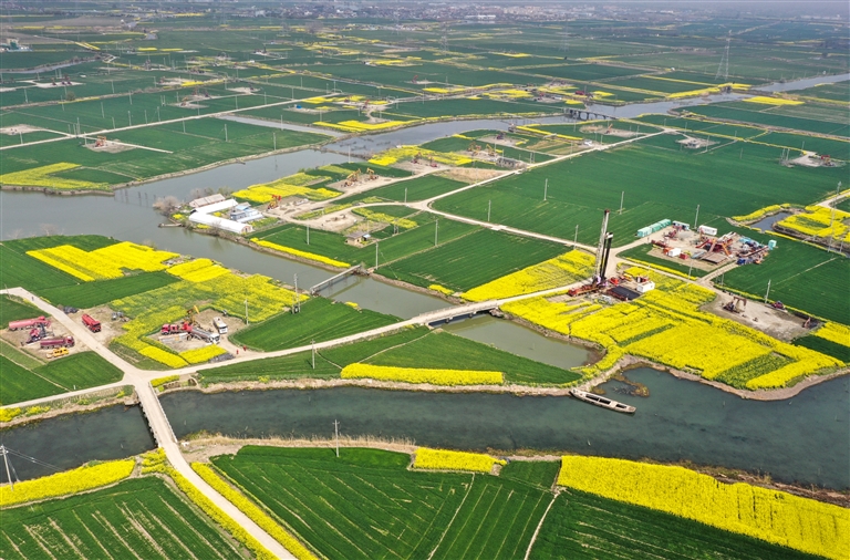 中国石化股份有限公司江苏油田分公司素有“水乡油田”之称。眼下春和景明,田园环绕的油井在怡人风光里开展生产。 新华社记者 杨磊 摄