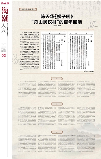 陈天华《狮子吼》“舟山民权村”的百年回响